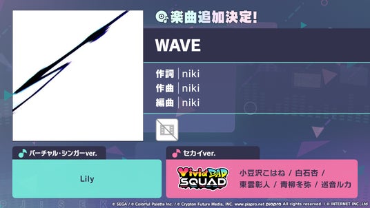 今後、リズムゲーム楽曲として追加予定です。詳細情報の公開をお楽しみに!