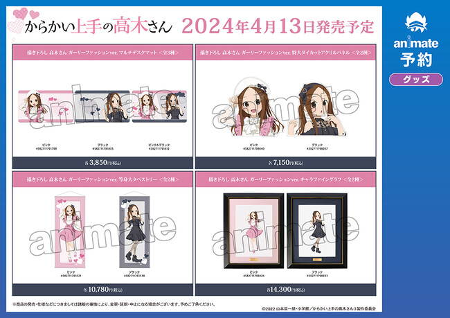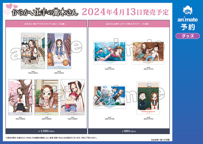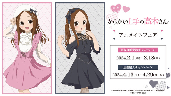 2024年4月13日(土)よりアニメイト対象店舗にて「アニメ『からかい上手の高木さん』アニメイトフェア」の実施が決定いたしました。