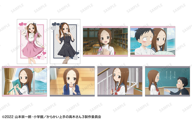 2024年4月13日(土)~2024年4月29日(月・祝)のイベント開催期間中、アニメイト対象店舗(通販のぞく)にてアニメ『からかい上手の高木さん』関連のキャラクターグッズをご購入1,100円(税込)毎に、店舗購入キャンペーン限定「ポストカード(全8種)」を1枚プレゼント!