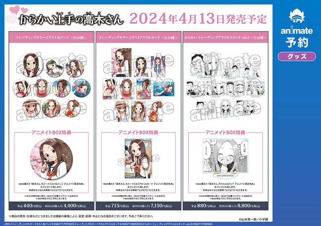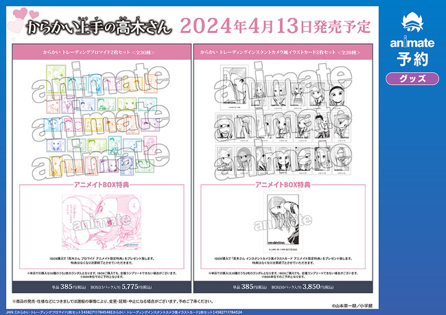 ※4月13日(土)より予約開始予定のECサイト「AMNIBUS」では、BOX購入特典として「高木さん ブロマイド AMNIBUS限定特典」を予定しております。
