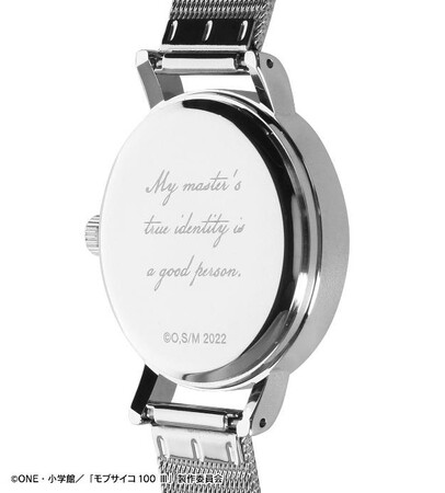 文字盤中央は、能力使用時のエフェクトをイメージしたホログラム加工となっており「MOB」の文字が入っております。