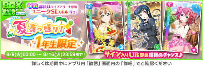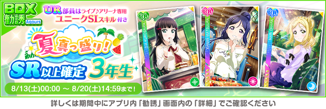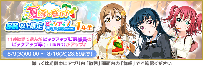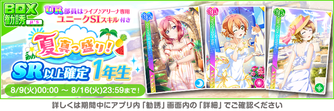 株式会社ブシロード(本社:東京都中野区、代表取締役社長:木谷高明)は、KLab株式会社(本社:東京都港区、代表取締役社長:森田英克)と共同開発いたしましたスマートフォン向けアプリ『ラブライブ!スクールアイドルフェスティバル』(以下、スクフェス) において2022夏真っ盛りキャンペーン第2弾の開催をお知らせいたします。