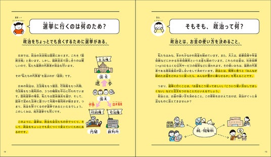 ▲0章。「政治をちょっとでも良くするために選挙がある」「政治とは、お金の使い方を決めること」など、政治や選挙について考えるヒントが満載。