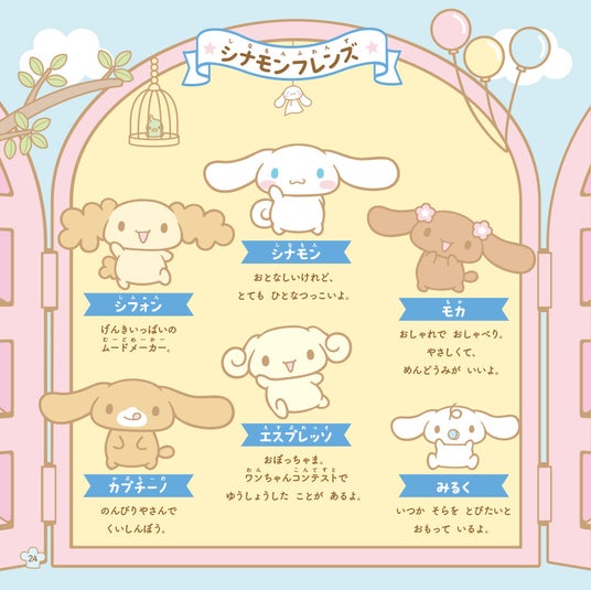 シナモンはお友達と遊ぶことがだいすき! みんなのお名前は、「シフォン」「モカ」「エスプレッソ」「カプチーノ」「みるく」。