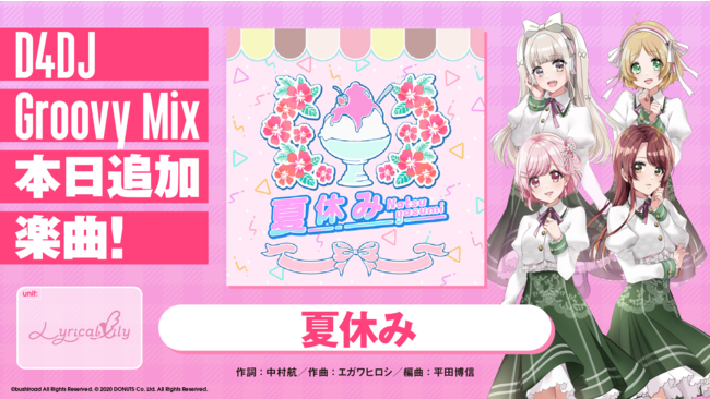 株式会社ブシロード(本社:東京都中野区、代表取締役社長:木谷高明)は、株式会社DONUTS(本社:東京都渋谷区、代表取締役:西村啓成)と共同開発のスマートフォン向けリズムゲーム「D4DJ Groovy Mix」(以下グルミク)にて、イベント&ガチャ「心に残る思い出をいっしょに」を開催いたします。