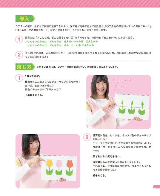 「作品のねらい」、「対象」、演じるのに必要な「時間」、「準備するもの」、「作り方」を掲載しています。スケッチブックシアター、ペープサート、パネルシアター、空き缶シアターなど、いろいろなシアターを収録。