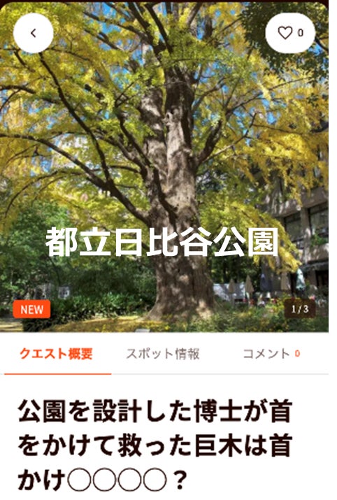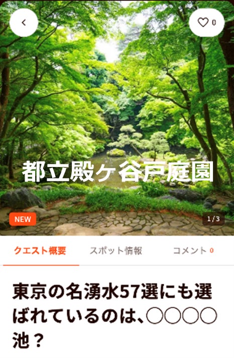 「東京グリーンビズ・クエスト」は、緑溢れるスポットをめぐり、各スポットで設定されたミッション(クエスト)をクリアしながら、自然について学び、緑の魅力を満喫することができる周遊体験を提供するサービスです。