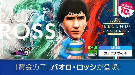 好評配信中のスポーツ育成シミュレーションゲーム『プロサッカークラブをつくろう! ロード・トゥ・ワールド』(以下 「サカつくRTW」)は、2024年8月14日(水)より、レジェンド「パオロ・ロッシ」をはじめとしたイタリアのスーパースターたちが、得意戦術カウンターの新★5選手として登場する“LEGEND SCOUT”を開催します。