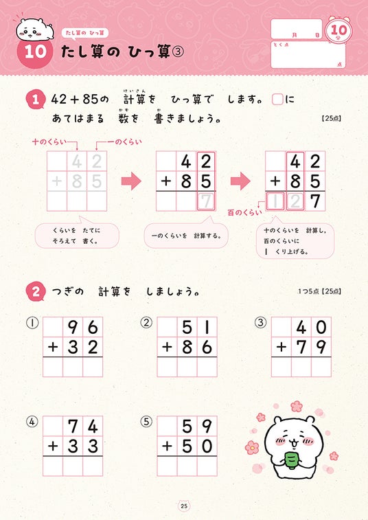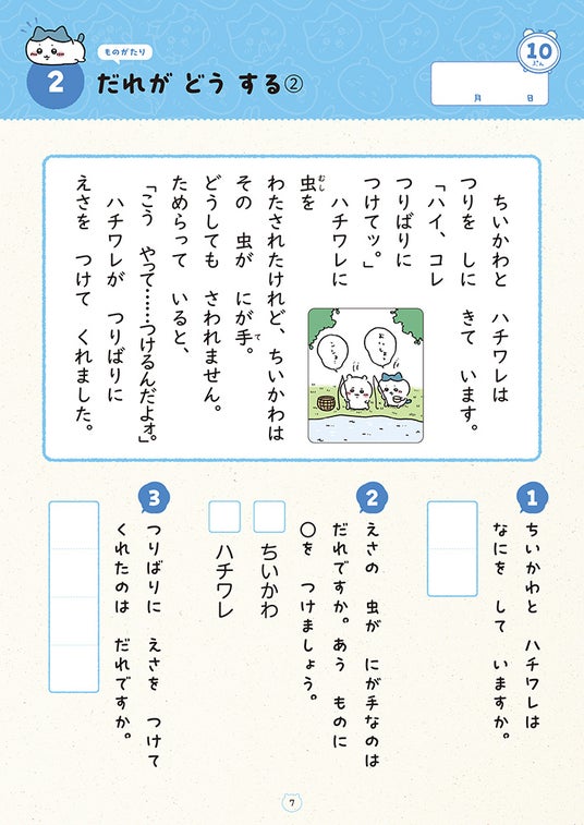 またシリーズ新作「小学1年生のこくご」も登場。本書では「ちいかわ」の原作を参考にした文章読解や、語彙力、学年の全漢字が学べるようになっています。特に、文章読解には、小学1年生が無理なく取り組めるように工夫が盛りだくさんです。