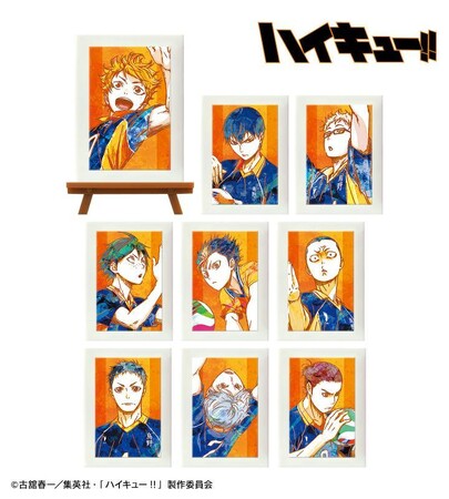 日向翔陽、影山飛雄、月島蛍、山口忠、西谷夕、田中龍之介、澤村大地、菅原孝支、東峰旭のビジュアルを新たなタッチで魅力的に表現し、ミニアートフレームに仕上げました。