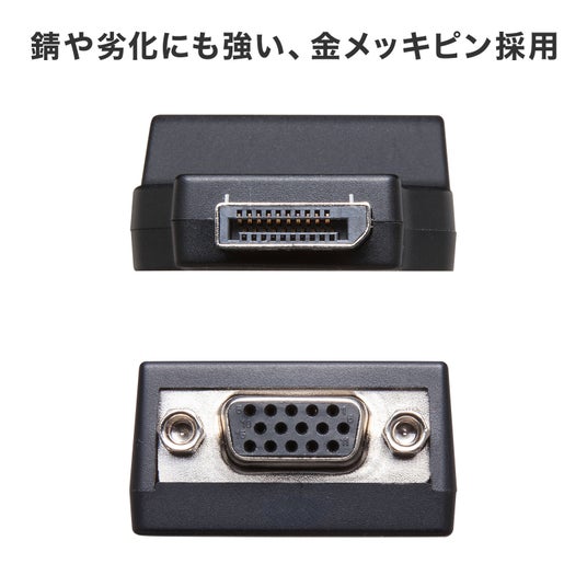 パソコンに搭載されているDisplayPortコネクタ(メス)をVGAコネクタ(メス)に変換できます。