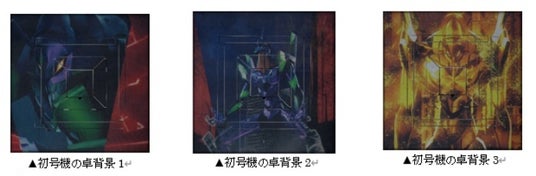 「零号機の卓背景1」「弐号機の卓背景1」「初号機の卓背景1」など、全5種の卓背景アイテムが登場します。
