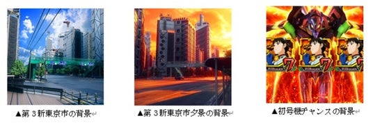 「第3新東京市の背景」「第3新東京市夕景の背景」「初号機チャンスの背景」など、全10種のEX背景アイテムが登場します。