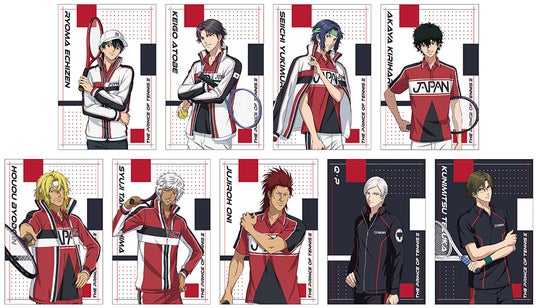 種類:9種(越前リョーマ/跡部景吾/幸村精市/切原赤也/平等院鳳凰/種ヶ島修二/鬼 十次郎/Q・P/手塚国光)