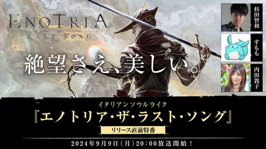 株式会社セガは、9月19日(木)に発売予定のソウルライクアクションRPG『Enotria: The Last Song(エノトリア:ザ・ラスト・ソング)』について、ゲーム内容を紹介する生放送を、9月9日(月)20時に配信いたします。