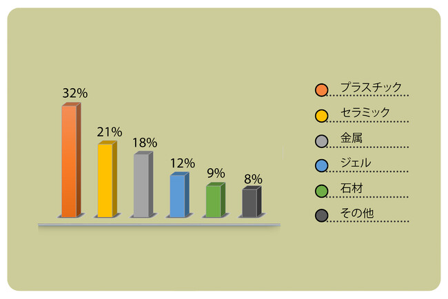 製品の種類によって、市場はプラスチック、金属、セラミック、石、木材などに分類されます。