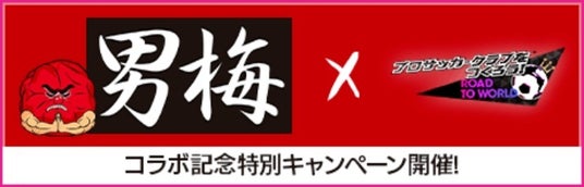 また、 “男梅コラボキャンペーン”を同日より開始しました。キャンペーンでは、リミテッドディビジョンの順位報酬として「男梅カップ記念ユニフォーム」が獲得できるカップ戦イベント“LIMITED MATCH 男梅 CUP”をはじめ、「男梅」とのコラボ記念エンブレムや各種金アクセサリーが獲得できる特別ミッション、「★5確定スカウトチケット」などが獲得できる豪華ログインボーナスなどが期間限定で登場します。