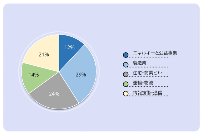 業種別では、エネルギー・公共事業、製造業、住宅・商業ビル、運輸・物流、情報技術・通信に分類されます。