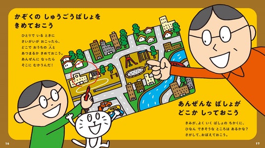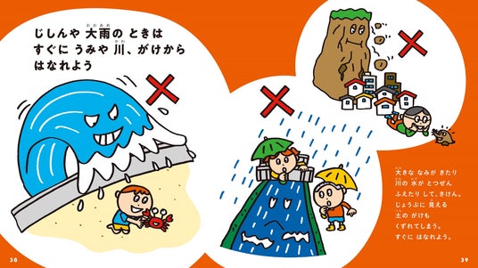 ▲『一生つかえる!おまもりルールえほん ぼうさい』より。専門家監修の内容と親しみやすいイラスト。
