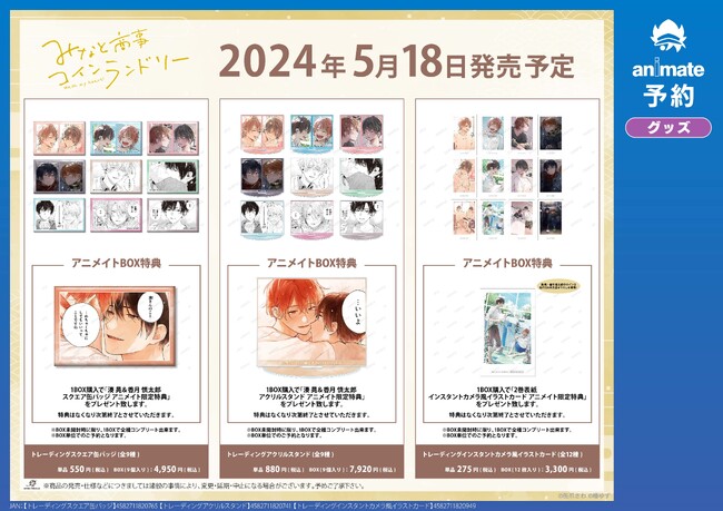 「『みなと商事コインランドリー』アニメイトフェア 通販事前予約キャンペーン」
