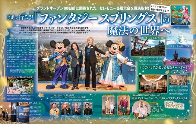月刊「ディズニーファン」最新の5月号は、東京ディズニーシー(R)「ファンタジースプリングス」公開まで100日を迎えた2月27日に行われたセレモニー&展示会の模様を徹底レポート! エリア模型や、初公開となった新アトラクションのビークル模型、数多くのグッズやメニューを紹介するとともに、イマジニアへのインタビューもたっぷり掲載し、その魅力に迫ります。「ファンタジースプリングス」の魔法が体験できる日がもうすぐやってきます!