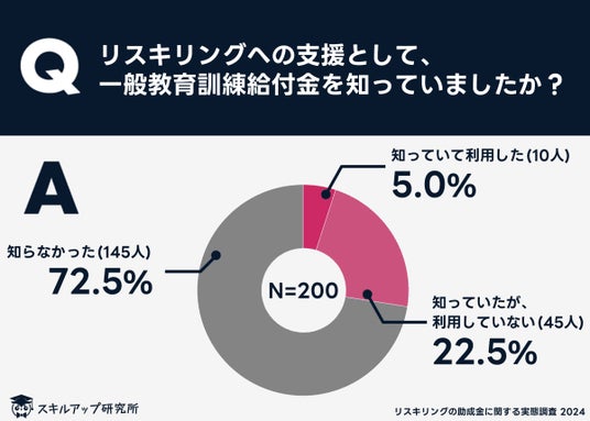 株式会社 学研ホールディングス(東京・品川/代表取締役社長:宮原博昭)のグループ会社、株式会社ベンド(本社:東京都千代田区、CEO近藤潔)は、運営する「スキルアップ研究所(https://reskill.gakken.jp/)」にて、「リスキリング時の助成金の認知・利用に関する実態調査」を行いましたので、以下に結果を報告いたします。