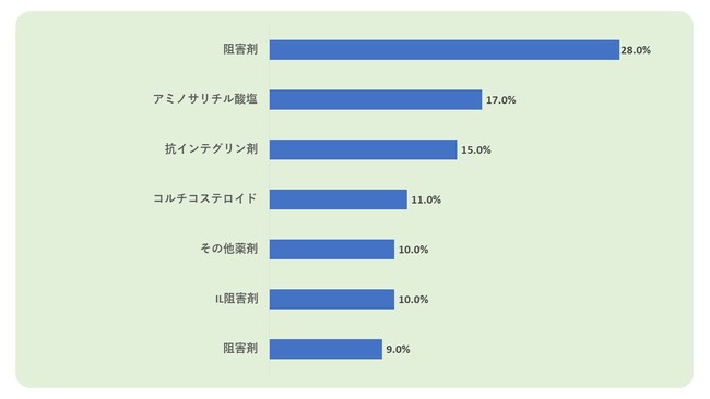 質問:炎症性腸疾患治療薬の市場では、どの薬効成分が好まれていますか?