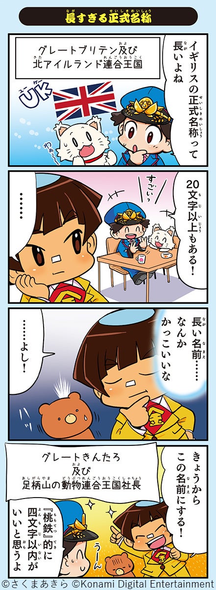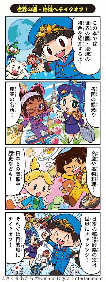 プレイヤーが鉄道会社の社長となって、日本や世界中のあらゆる地域を巡って物件を買い集め、総資産ナンバー1の社長をめざすすごろく形式のゲームです。2023年11月に最新作『桃太郎電鉄ワールド ~地球は希望でまわってる!~』(Nintendo Switch用ゲーム)が発売され、累計販売本数が100万本を突破。世界各地の名産や地理、歴史要素を学びながらプレイできることで人気を集めています。今回、まんがサイト「ガッコミ」にて、“桃鉄”の新作4コママンガの掲載がスタートしました。最新作『桃太郎電鉄ワールド ~地球は希望でまわってる!~』と、学習参考書でおなじみの学研がコラボレーションしたエンタメ学習本「マンガ・クイズつき『桃太郎電鉄』で学ぶ世界の地理・歴史攻略」に収録されている4コマで、世界の地理・歴史・雑学を楽しく学べる内容です。毎週、世界のあらゆる国や地域について紹介していきます。‟桃鉄”のキャラクターたちの活躍を、ぜひお見逃しなく!児童書「マンガ・クイズつき『桃太郎電鉄』で学ぶ」シリーズは、2022年2月に「47都道府県地理・歴史攻略」、2022年12月に「お金・経済のしくみ攻略」、2024年3月に最新刊「世界の地理・歴史攻略」を発売いたしました。学校教育機関向けのブラウザゲーム『桃太郎電鉄 教育版Lite ~日本っておもしろい!~』が2023年1月に提供スタートし、家でも学校でも大人気の‟桃鉄”のエンタメ学習本シリーズとして好評いただいております。「ガッコミ」や書籍で‟桃鉄”4コマを読んで、地理・歴史・経済を攻略してみてはいかが?