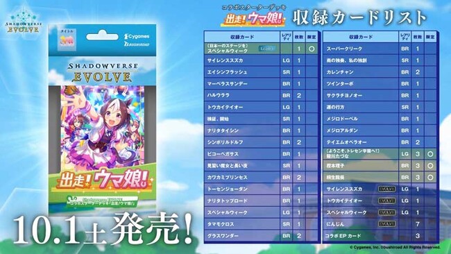 株式会社ブシロード(本社:東京都中野区、代表取締役社長:木谷高明)と株式会社Cygames(本社:東京都渋谷区、代表取締役社長:渡邊 耕一)は、『ウマ娘 プリティーダービー』コラボスターターデッキ&コラボパックの2022年10月1日(土)の発売に先がけ、9月2日(金)より『Shadowverse EVOLVE』全国初心者講習会の開催を開始したことをご報告いたします。