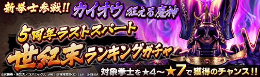 ◆UR「カイオウ 狂える魔神」参戦! “5周年ラストスパート 世紀末ランキングガチャ”開催!