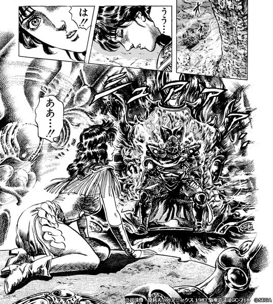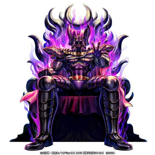狂える巨大な魔神となって北斗琉拳の魔界に君臨し、第一の羅将として修羅の国を統べるカイオウの姿。魔道の血と虐げられた北斗琉拳の血を憎み、北斗神拳の血を絶やさんと憤りを燃やす彼は、鎧で封じてもなお噴出する魔闘気をたぎらせてケンシロウの前に立ちはだかる。