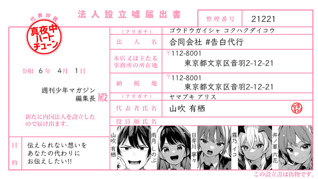 週刊少年マガジンで連載中の声にまつわるラブコメ『真夜中ハートチューン』の放送部員たちが会社を設立しました。