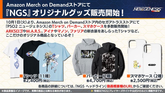 2024年10月1日(火)より、Amazon Merch on Demandストア内のセガアトラスショップにて、『NGS』オリジナルグッズの販売を開始しました。