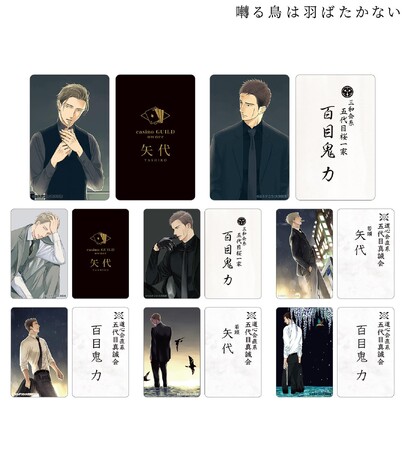 矢代、百目鬼のイラストを、裏面が名刺風のデザインになっているカードに仕上げました。