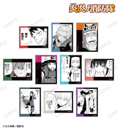 種類 :全10種(森羅 日下部 ver.A、森羅 日下部 ver.B、森羅 日下部 ver.C、森羅 日下部&アーサー・ボイル、森羅 日下部&アーサー・ボイル&環 古達、森羅 日下部&アーサー・ボイル&新門 紅丸、第8特殊消防隊 ver.A、第8特殊消防隊 ver.B、第8特殊消防隊 ver.C、集合)