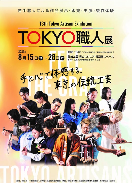 東京都及び(公財)東京都中小企業振興公社は、東京都の指定する伝統工芸品に携わる後継者層の育成支援を目的として、伝統工芸品の展示・販売、製作体験等を行う『第13回TOKYO職人展』を開催いたします。