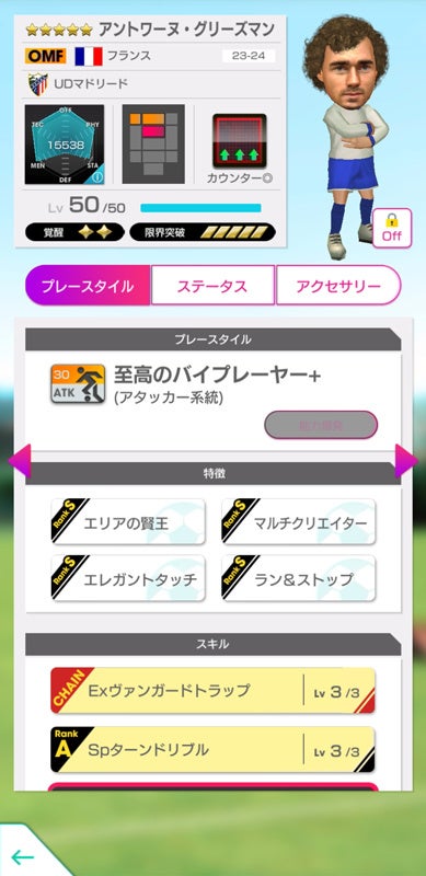 今回の“ピックアップクラブSCOUT”では、「アントワーヌ・グリーズマン」「コケ」「サムエウ・リーノ」「アルバロ・モラタ」「ステファン・サヴィッチ」「ヤン・オブラク」「アクセル・ヴィツェル」「メンフィス・デパイ」「マルコス・ジョレンテ」「サウール・ニゲス」「ホセ・ヒメネス」といった、スペイン強豪クラブの「カウンター」を得意戦術とする新★5選手11人が、「レベルMAX(Lv.50)/覚醒2段階達成/各スキル・各能力UP Lv.2達成」で登場します。