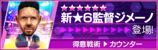 該当の選手を編成すると強くなるフォーメーションコンボ「闘将の規律」と、「戦術得意度Lv10」を持つ新★6監督「ジメーノ」が登場! 期間中に開催される特別ミッション「10試合行う」で獲得できます。