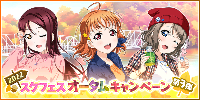 株式会社ブシロード(本社:東京都中野区、代表取締役社長:木谷高明)は、KLab株式会社(本社:東京都港区、代表取締役社長:森田英克)と共同開発いたしましたスマートフォン向けアプリ『ラブライブ!スクールアイドルフェスティバル』(以下、スクフェス) において2022スクフェスオータムキャンペーン第3弾の開催をお知らせいたします。