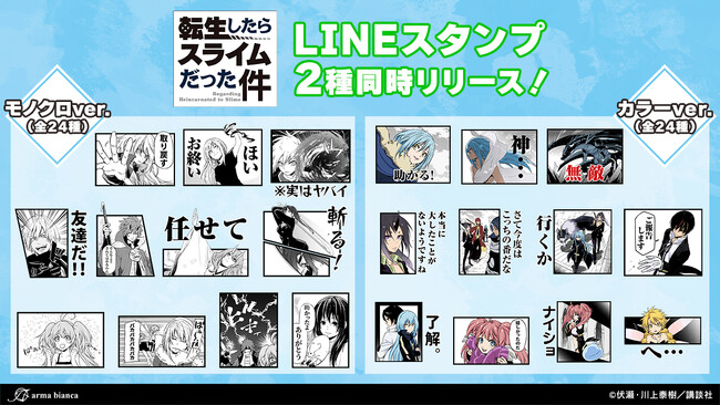 株式会社アルマビアンカ(本社:東京都中野区、代表取締役:坂井智成)は漫画「転生したらスライムだった件」のLINEスタンプ配信を3月11日(月)より開始いたしました。