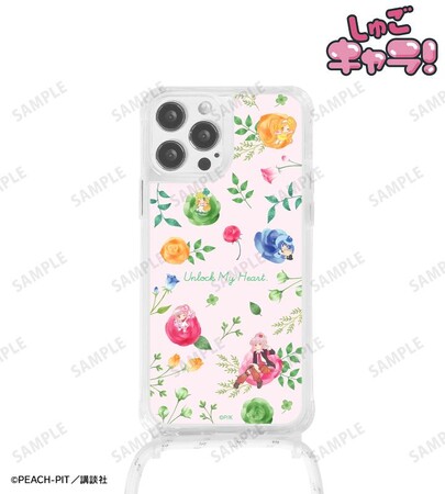 日奈森あむ、ラン、ミキ、スゥ、ダイヤのイラストをボタニカルデザインに落とし込んで繊細なタッチで新たに描き起こし、ショルダーiPhoneケースに仕上げました。