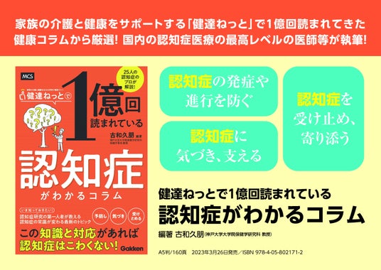 株式会社学研ホールディングス(東京・品川/代表取締役社長:宮原博昭)のグループ会社、メディカル・ケア・サービス株式会社(埼玉・さいたま市/代表取締役社長:山本教雄)は、2024年3月26日(火)に、『健達ねっとで1億回読まれている 認知症がわかるコラム』を発行いたします。