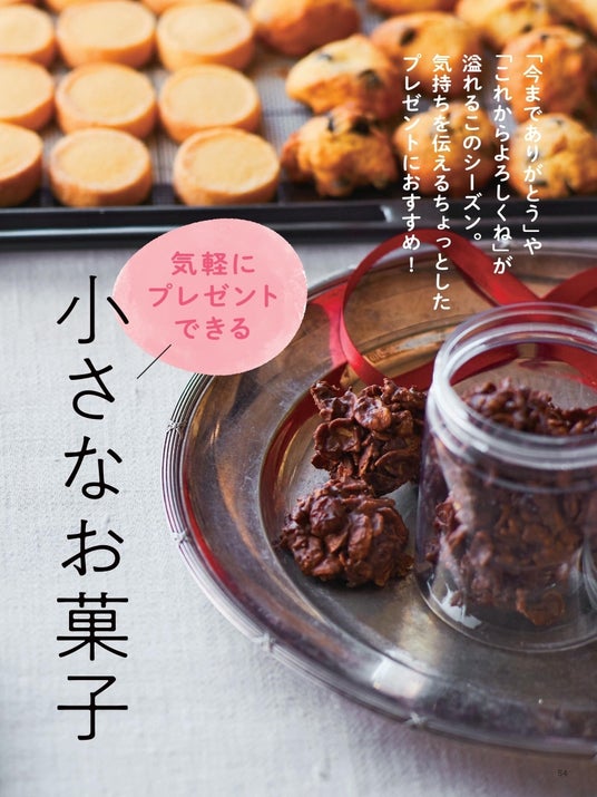 「今までありがとう」「これからもよろしくね」。お礼の気持ちをさらっと伝えたいときにぴったりの、小さめサイズのお菓子&ラッピングを紹介。お菓子も簡単に、おいしくかわいく作れます。国内最大級のお菓子・パン作りのための専門サイト「cotta」とコラボした、マフィン型を使ったレシピも紹介。「ちょうどいい大きさ」にこだわって開発しました。