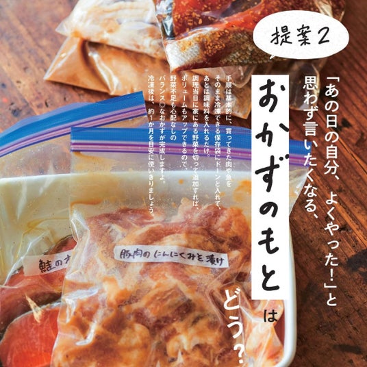 【フライパンひとつでワンパンレシピ】【下味冷凍でおかずのもと】【レシピを見ないで感覚調理】の3つに分けて、すぐにマネできる簡単&おいしいテクニックをまとめました。