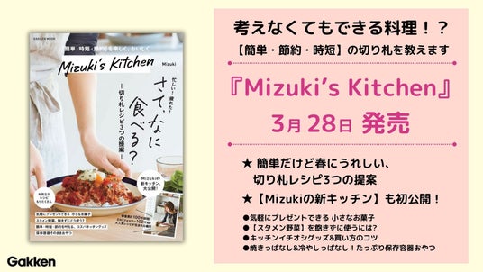株式会社 学研ホールディングス(東京・品川/代表取締役社長:宮原博昭)のグループ会社、株式会社 Gakken(東京・品川/代表取締役社長:五郎丸徹)は、著書累計発行部数100万部超え、Instagramフォロワー125万人超の料理研究家Mizukiの新刊『Mizuki’s Kitchen』を2024年3月28日(木)に発売いたしました。