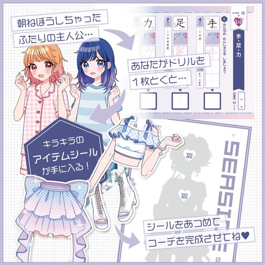 問題を解く→答え合わせ→ファッションシールをゲット! コーデを完成させることが勉強のモチベにつながる、おしゃれキッズのためのドリルが発売。体験モニターを大募集!