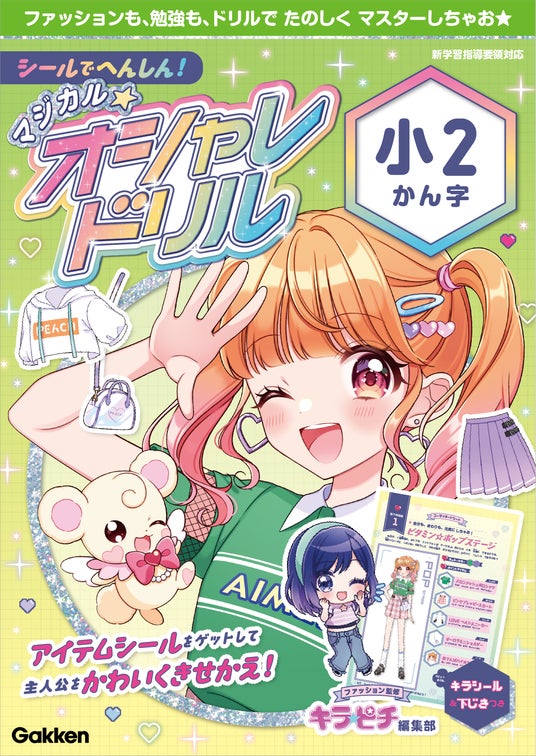 『マジカル☆オシャレドリル』は、ドリルを解き進めながら、ファッションもマスターできる、おしゃれが大好きな子どものための、漢字・計算ドリルシリーズ! 漢字や計算の問題を1回分(2ページ)解き終えると、キラキラのファッションシールを1枚ゲット。シューズ・ボトムス・トップス・ヘアアレンジなどのシールを次々に貼っていくことで、キラキラなコーディネートを完成させることができます。