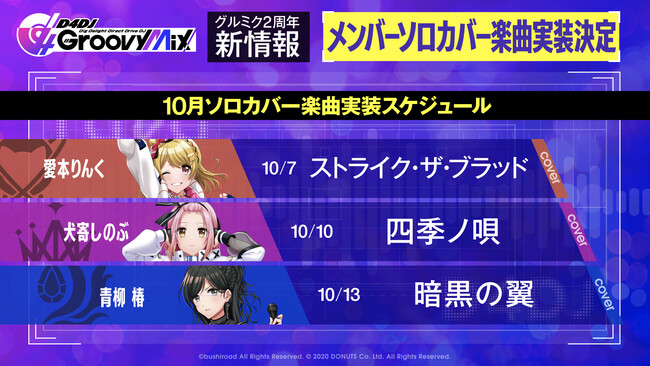 10月よりメンバーのソロカバー楽曲の実装が決定いたしました。
