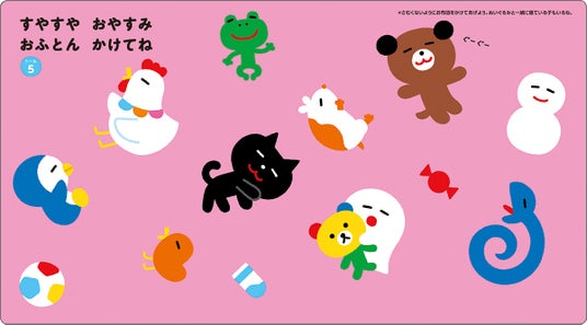 シールを貼って、おふとんをかけてあげよう。しましまぐるぐるシリーズに登場するかわいい動物たちがいっぱい登場!