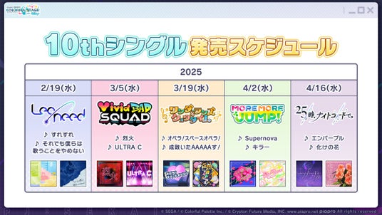 『プロジェクトセカイ』に登場する各ユニットの、10thシングルの発売が決定いたしました。